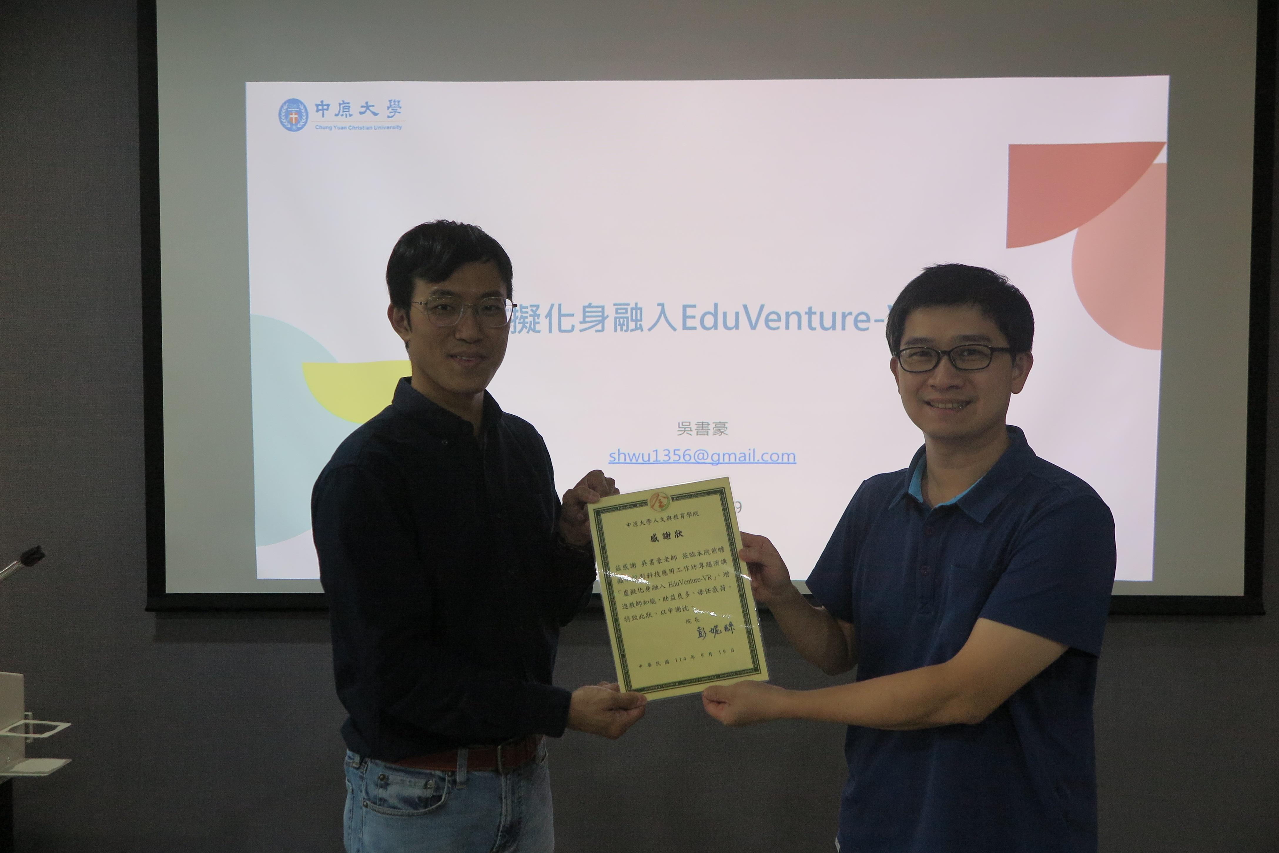 114年9月19日(五)虛擬化身融入EduVenture-VR 2025-10-03 114-1前瞻顯示科技工作坊 講題:虛擬化身融入EduVenture-VR活動日期:114年9月19日(五) 12:10至13:30演講人:吳書豪 老師主持人:簡山根老師參加對象:全校教師同仁參加人數:10人 You Might Also Like 114年11月28日(五) 走進虛擬,玩出真實:VR/AR 2025-11-28 114年10月13、15、16日前瞻場域實戰訓練 2025-10-30 114年9月17日(三)EduVenture-VR基礎操作與實作 2025-10-03