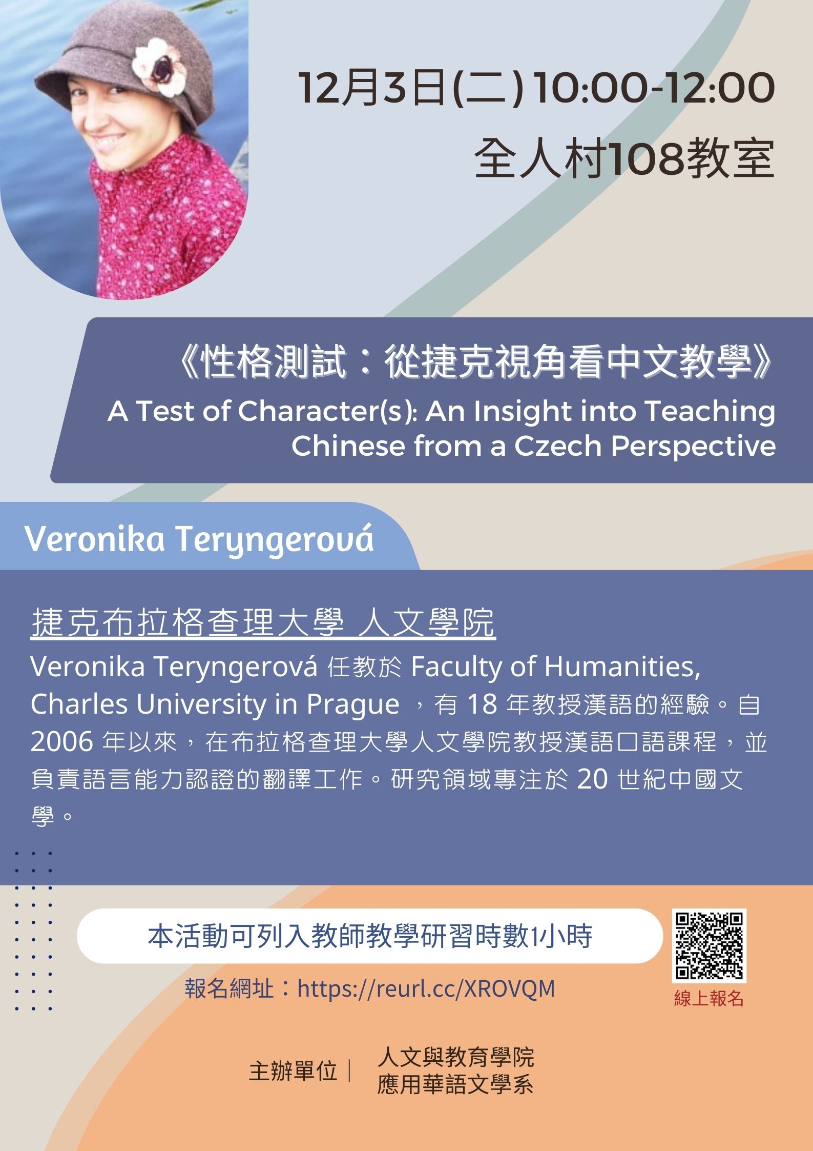 Veronika Teryngerová teaches at the Faculty of Humanities, Charles University in Prague, with 18 years of experience in teaching Chinese. Since 2006, she has been teaching spoken Chinese courses at the Faculty of Humanities and has been responsible for translation work related to language proficiency certification. Her research focuses on 20th-century Chinese literature.